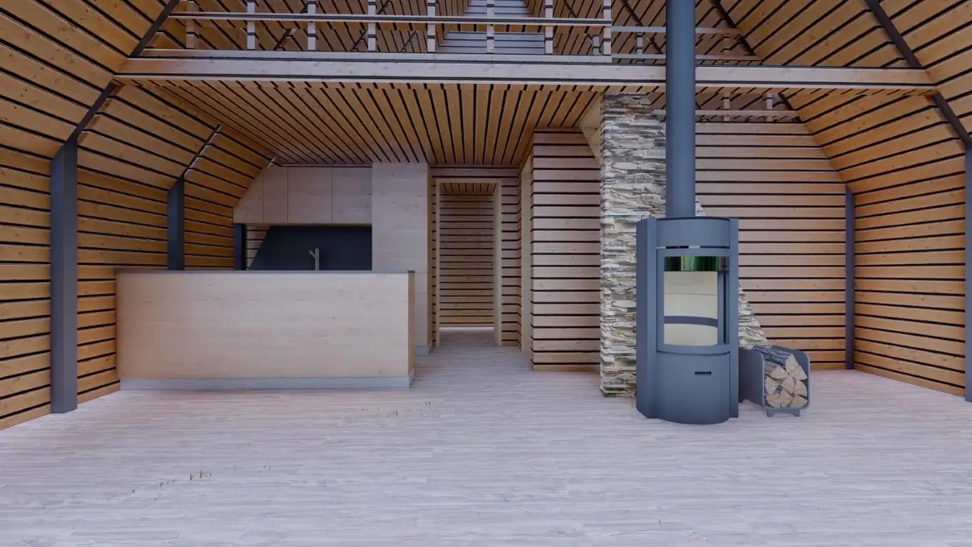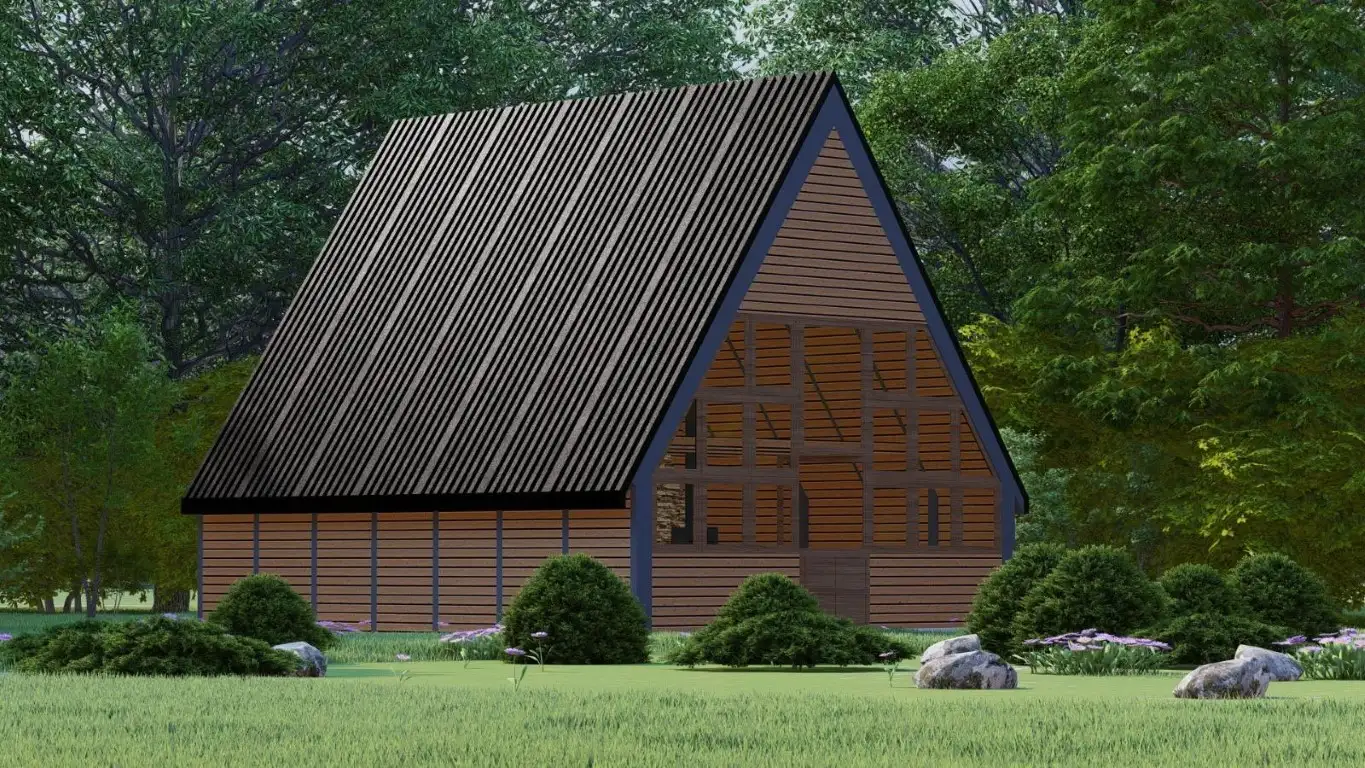 - Dik çatı formu sayesinde yağmur ve kar tahliyesi kolaylaşır, iç mekânda daha yüksek tavan hissi sağlanır. Doğal ahşap dokusu, estetik görünüm ile konforu bir arada sunar.