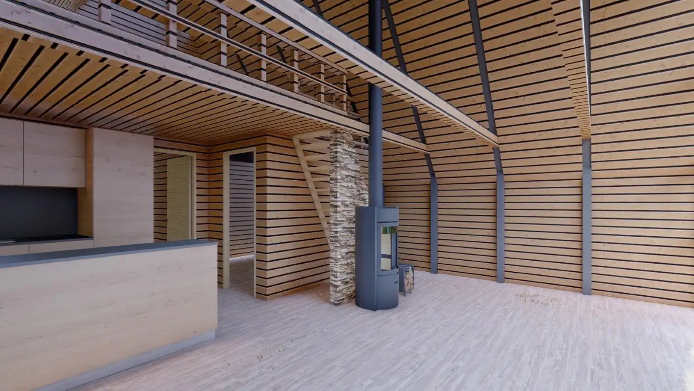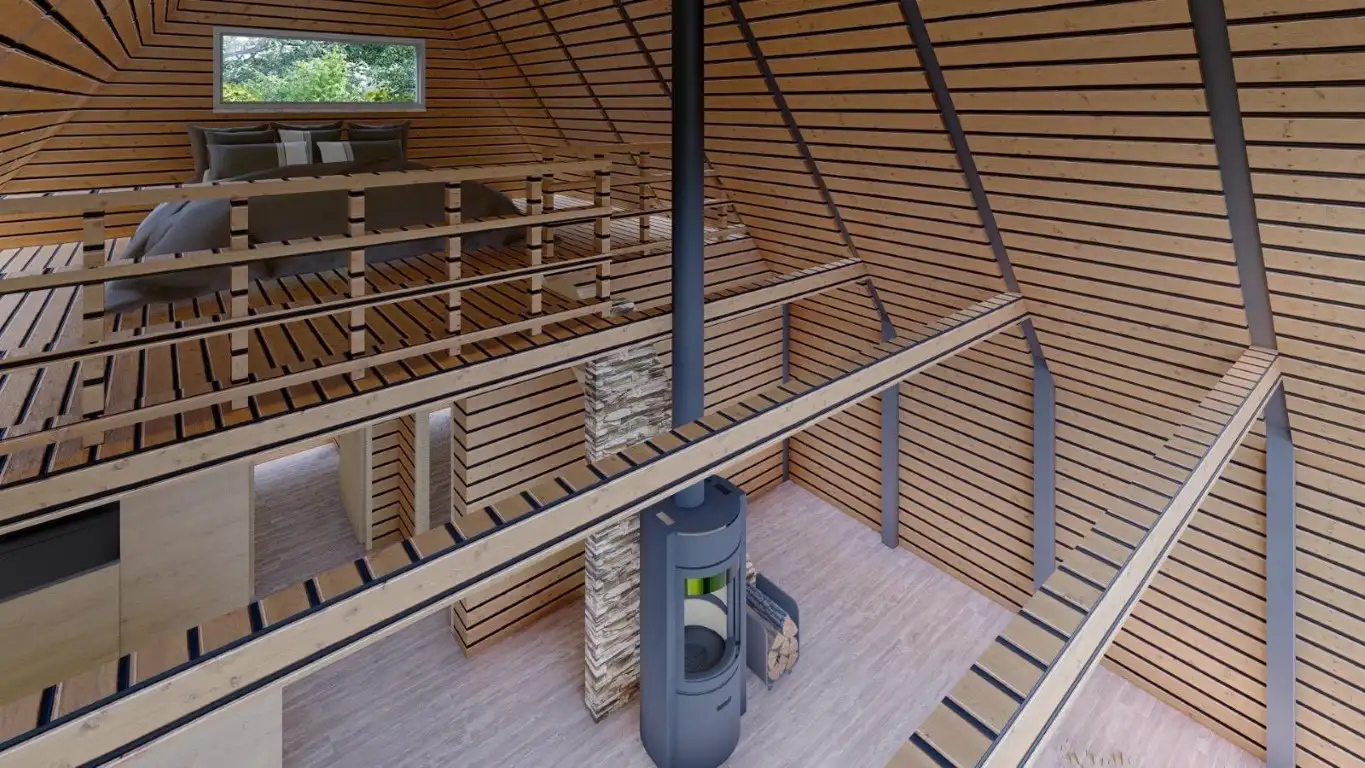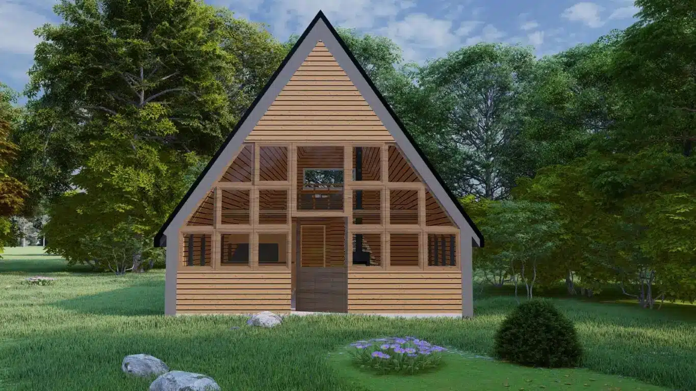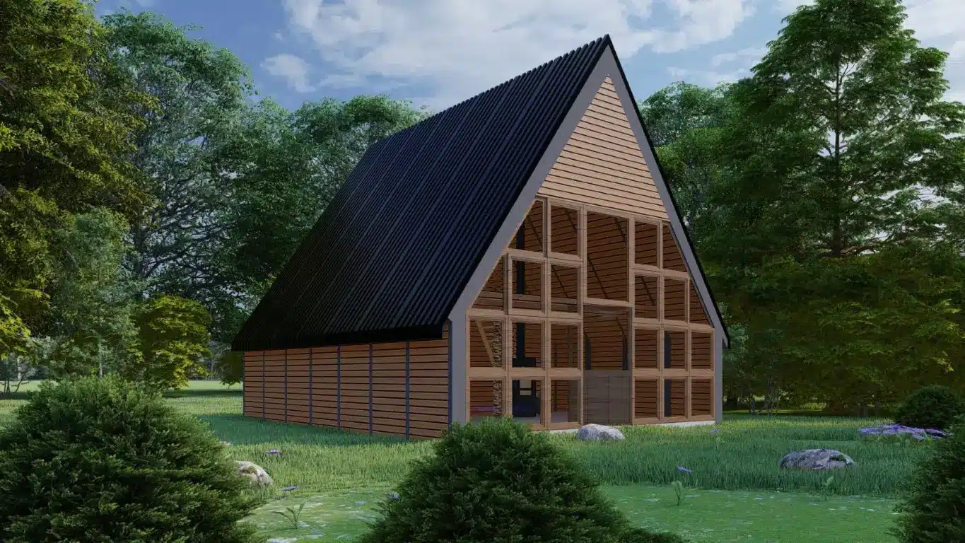 TAHA 60 m² dik çatılı ahşap ev, dört mevsim kullanım için tasarlanan sağlam yapısı ve ferah iç planlamasıyla öne çıkar.